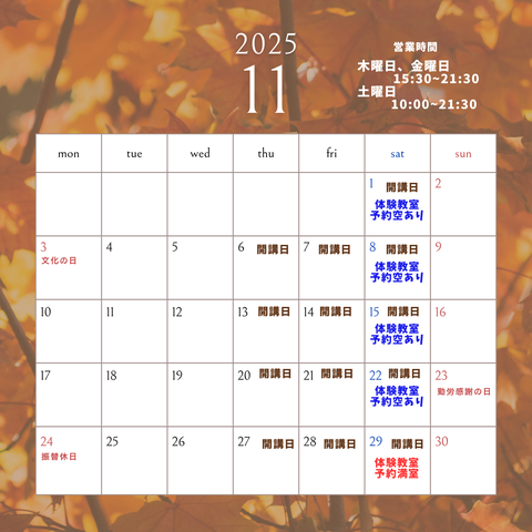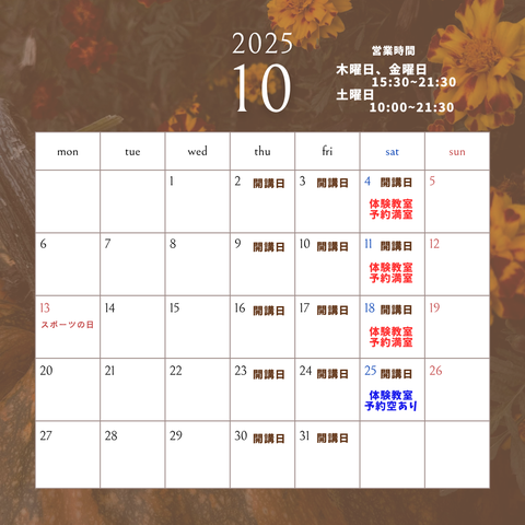 体験のお時間はお申し込みの際に調整させて頂きますので、お気軽にご相談ください。
